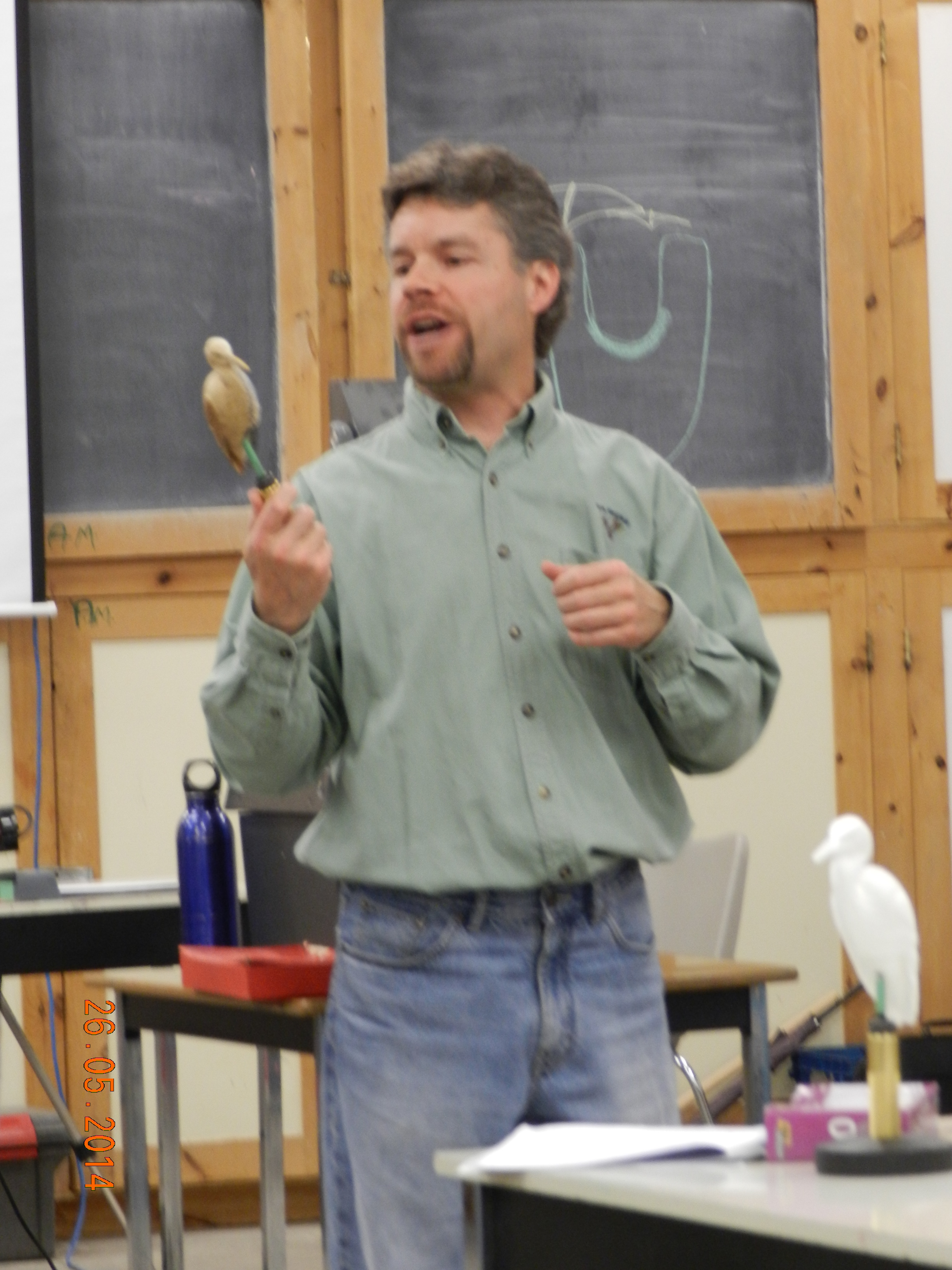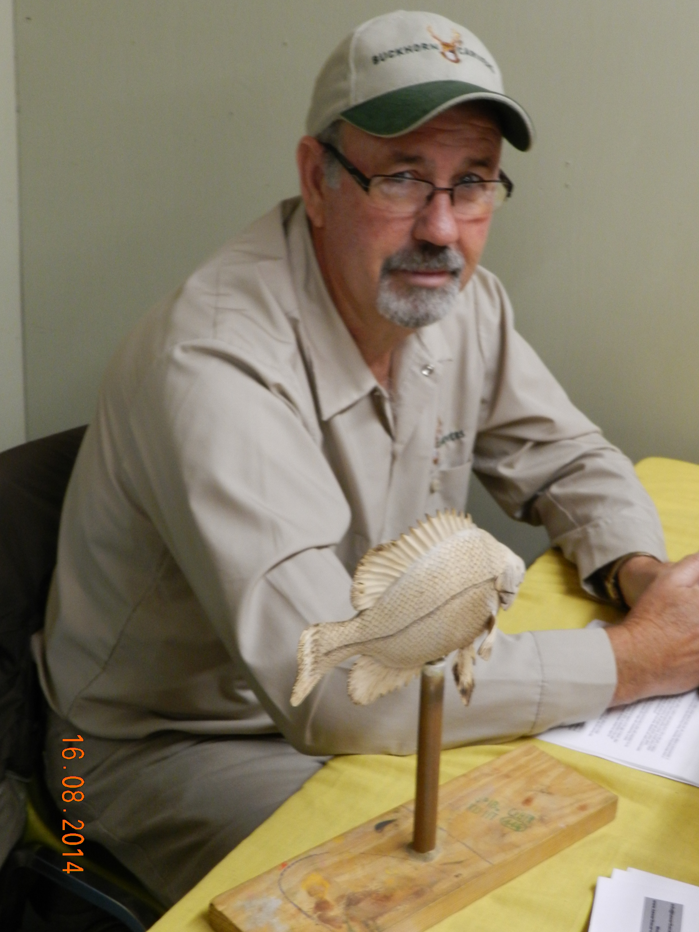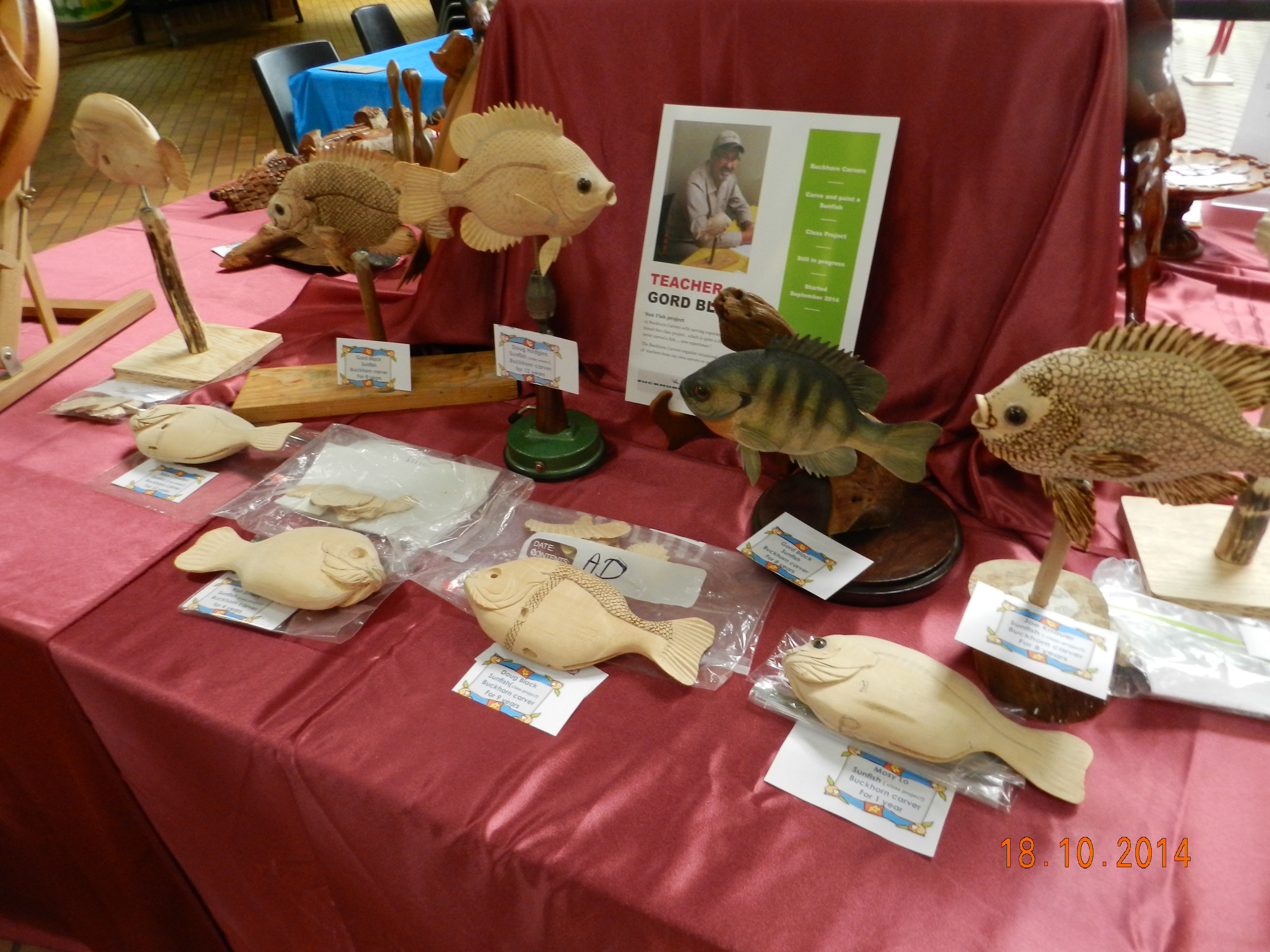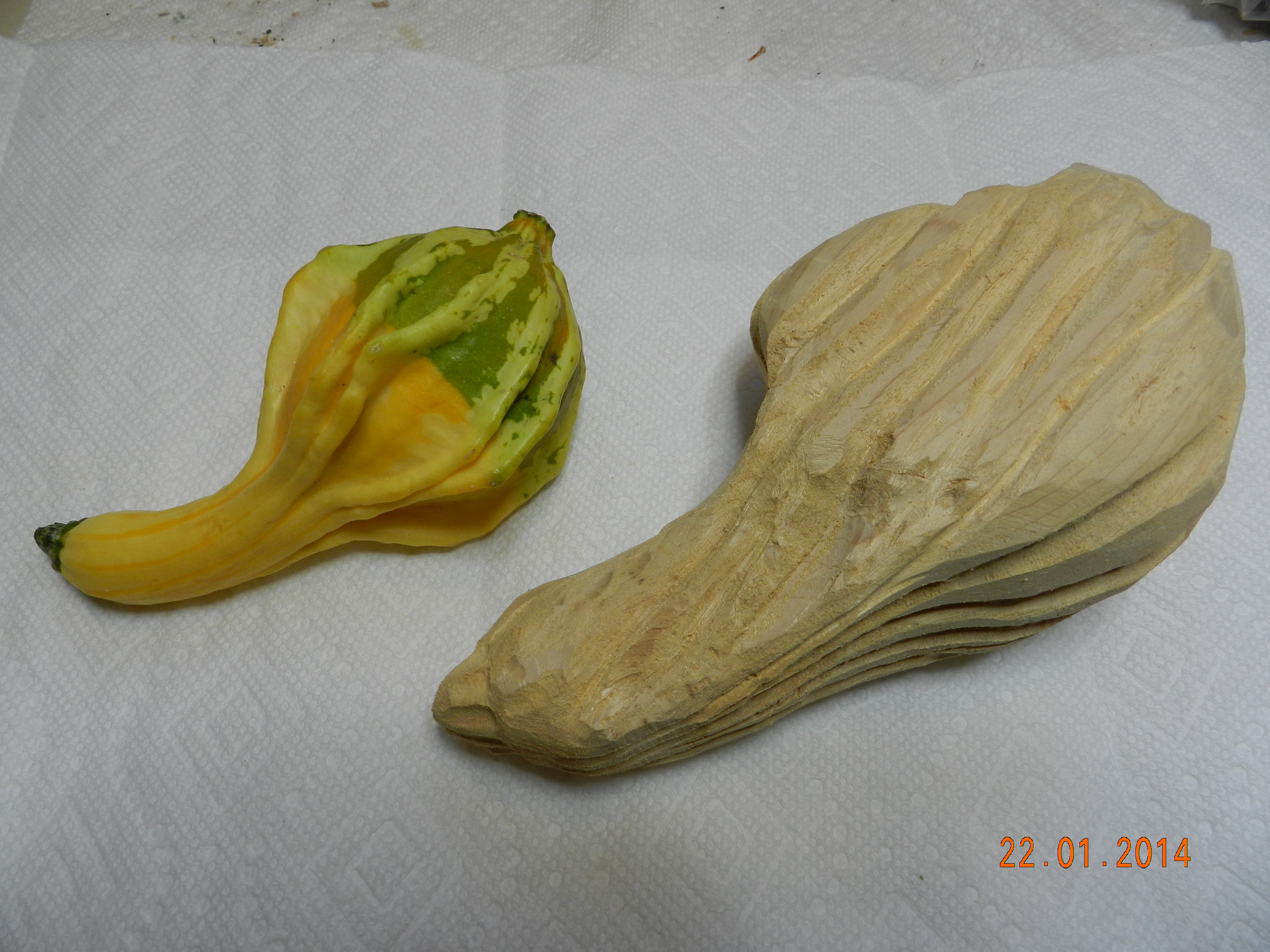 One of the Caygeon Carvers at work with a life sized Loon. It is col out there! Buckhorn January 2014Starting to carve a Gourd (the one on the left is the real one growing in our garden from seeds send by our German relatives)It ended up well at the Canadian National Wildfowl Carving Championship at the Owls Nest Show in Waterloo. In the category “In the round others” March 2014Changed the GROUP OF SEVEN PINE to a scene in winter.The flag of HUNGARY to honour the work of the very active Emma Perlaki as president of the Ontario Wood Carvers Association. It was displayed in a quilt with small carvings from many more carvers.Bob Gill with one of his amazing relief carvings.Trip to Ocean City for the World Carving Championship.Hundreds of amazing carvings…Including this Cuckoo , replacing a lost part of a cuckoo clock belonging to one of my wife’s friends. Not as amazing as some of the others…My little ELF OWL.Some world class carved decoy ducks were judged in the ocean water.Now back in Canada and Belleville for a one week carving lesson with John Leeder.Work in progress with the miniature BLUE HERON.and all the happy carvers in Belleville.Adding the habitat back home in Buckhorn.Some easier work with these BUTTERNUT OWLSThis is a real chipmunk, but would be a great model for a carving…Gord Black from the Buckhorn Carvers is heading the class project to carve and paint a SUNFISHThe Buckhorn Carvers displayed the various stages of their SUNFISH during the carving show in Pickering.The Buckhorn Carvers Club received a huge ribbon for their display in Pickering.Joint Christmas luncheon of the Buckhorn Carvers and Caygeon Carvers at the Buckhorn Community Center.