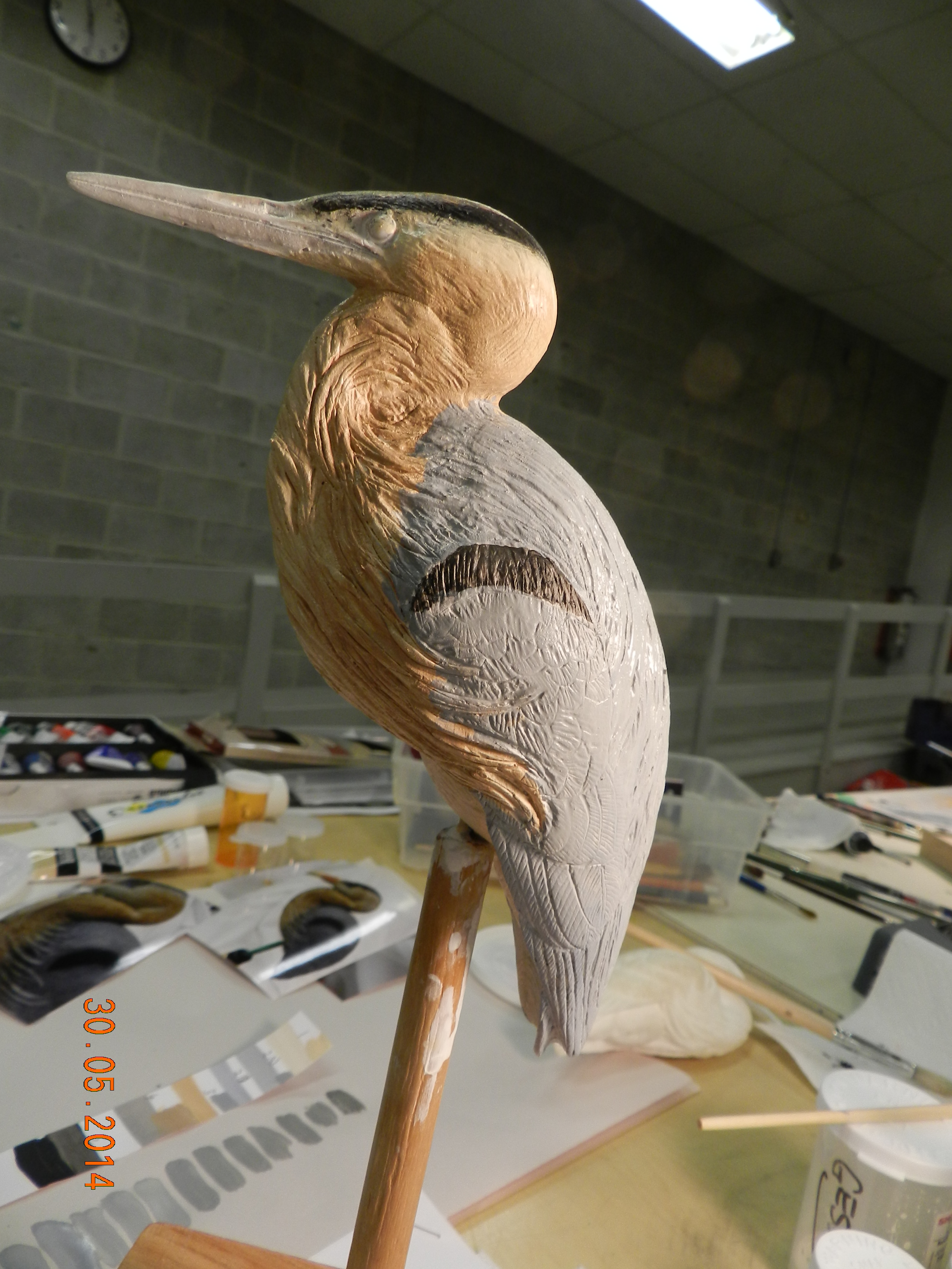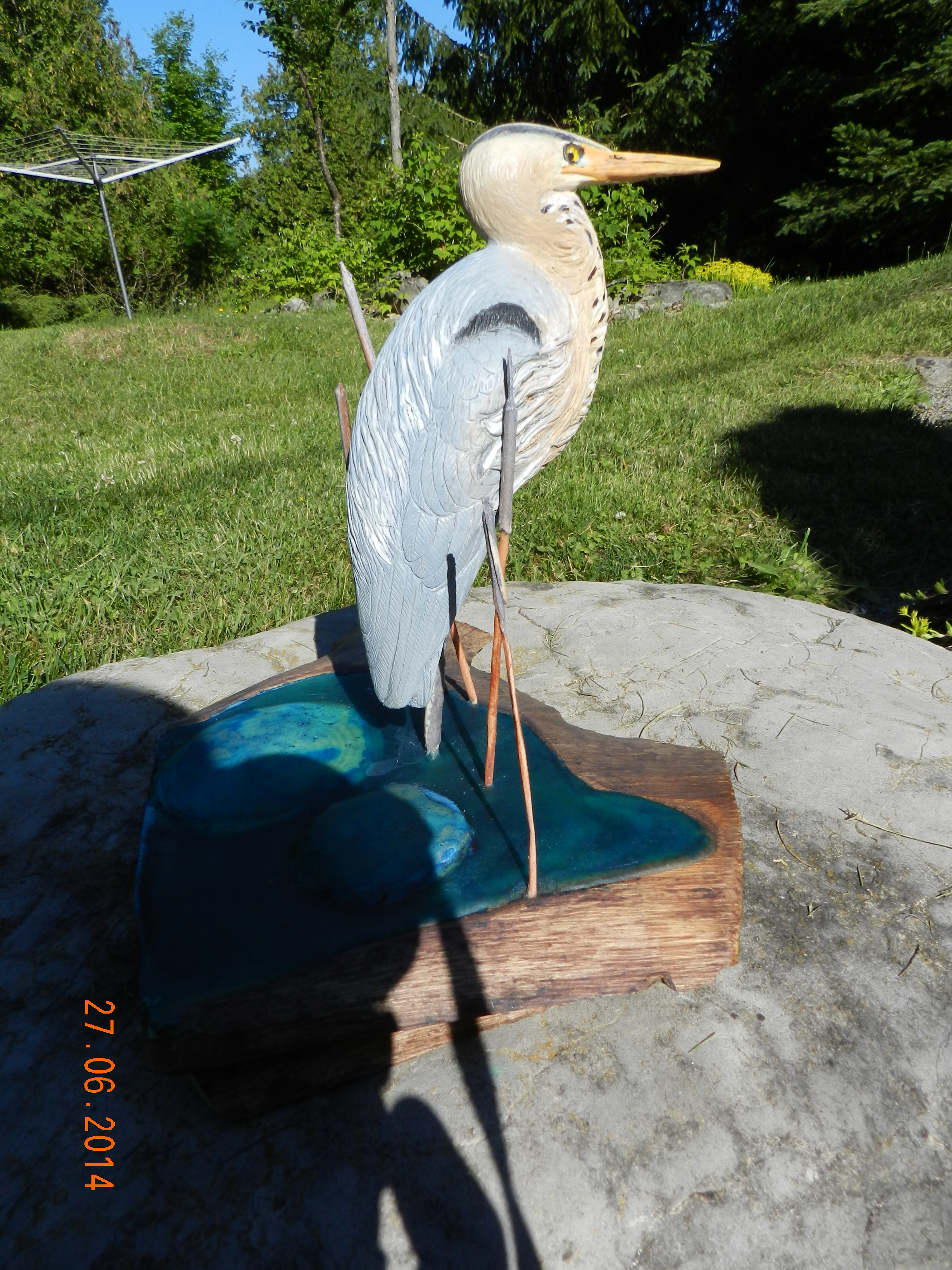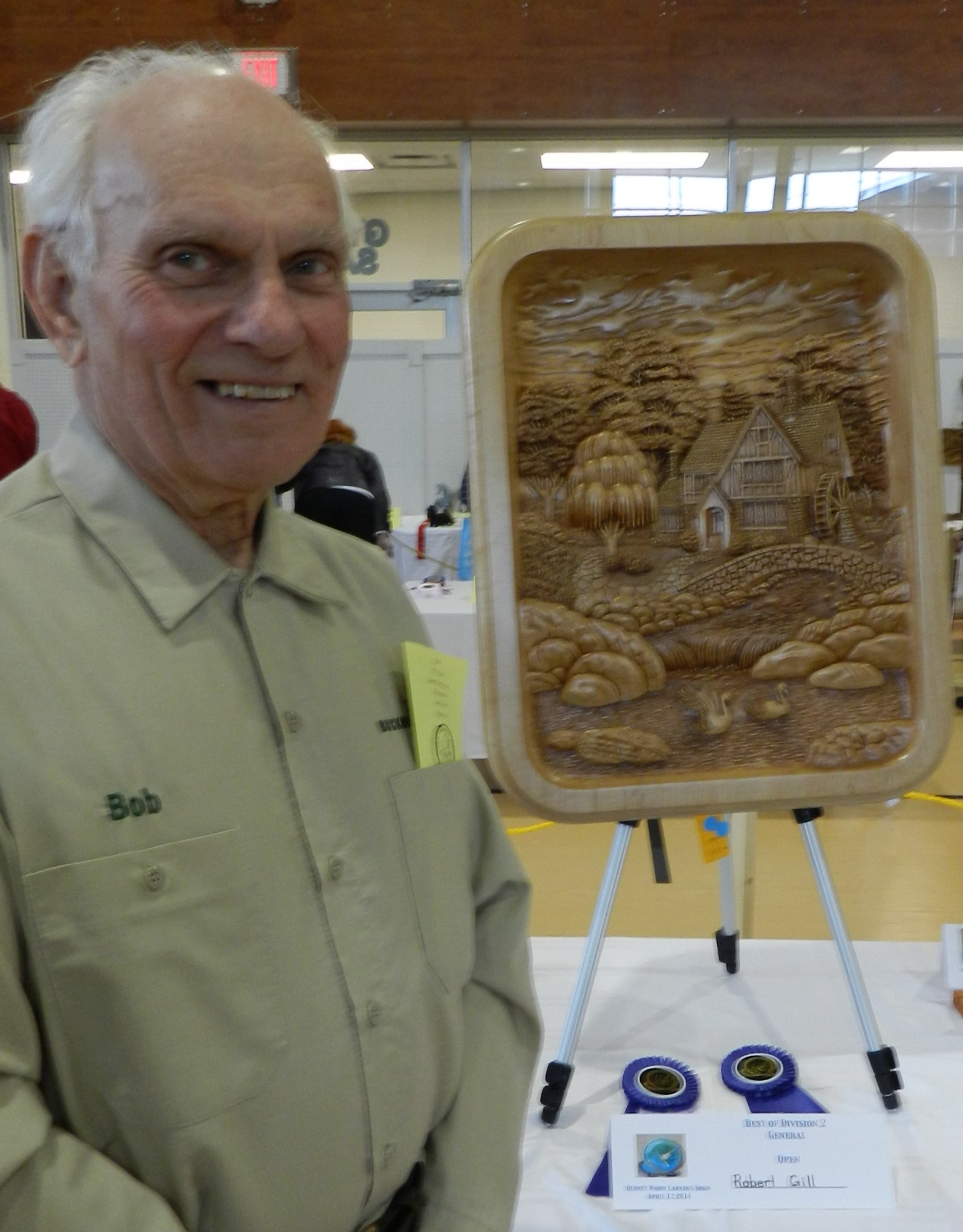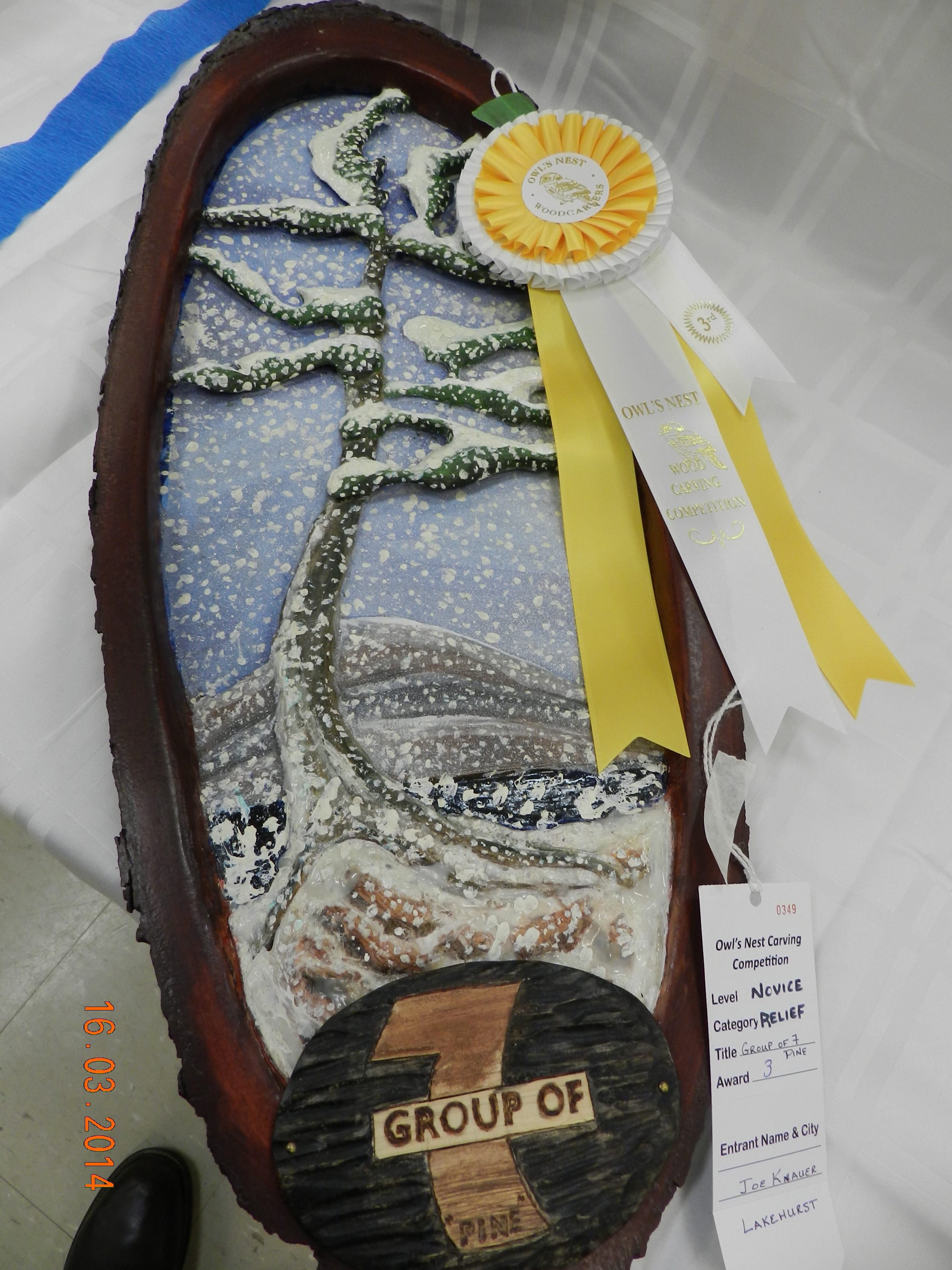 One of the Caygeon Carvers at work with a life sized Loon. It is col out there! Buckhorn January 2014Starting to carve a Gourd (the one on the left is the real one growing in our garden from seeds send by our German relatives)It ended up well at the Canadian National Wildfowl Carving Championship at the Owls Nest Show in Waterloo. In the category “In the round others” March 2014Changed the GROUP OF SEVEN PINE to a scene in winter.The flag of HUNGARY to honour the work of the very active Emma Perlaki as president of the Ontario Wood Carvers Association. It was displayed in a quilt with small carvings from many more carvers.Bob Gill with one of his amazing relief carvings.Trip to Ocean City for the World Carving Championship.Hundreds of amazing carvings…Including this Cuckoo , replacing a lost part of a cuckoo clock belonging to one of my wife’s friends. Not as amazing as some of the others…My little ELF OWL.Some world class carved decoy ducks were judged in the ocean water.Now back in Canada and Belleville for a one week carving lesson with John Leeder.Work in progress with the miniature BLUE HERON.and all the happy carvers in Belleville.Adding the habitat back home in Buckhorn.Some easier work with these BUTTERNUT OWLSThis is a real chipmunk, but would be a great model for a carving…Gord Black from the Buckhorn Carvers is heading the class project to carve and paint a SUNFISHThe Buckhorn Carvers displayed the various stages of their SUNFISH during the carving show in Pickering.The Buckhorn Carvers Club received a huge ribbon for their display in Pickering.Joint Christmas luncheon of the Buckhorn Carvers and Caygeon Carvers at the Buckhorn Community Center.