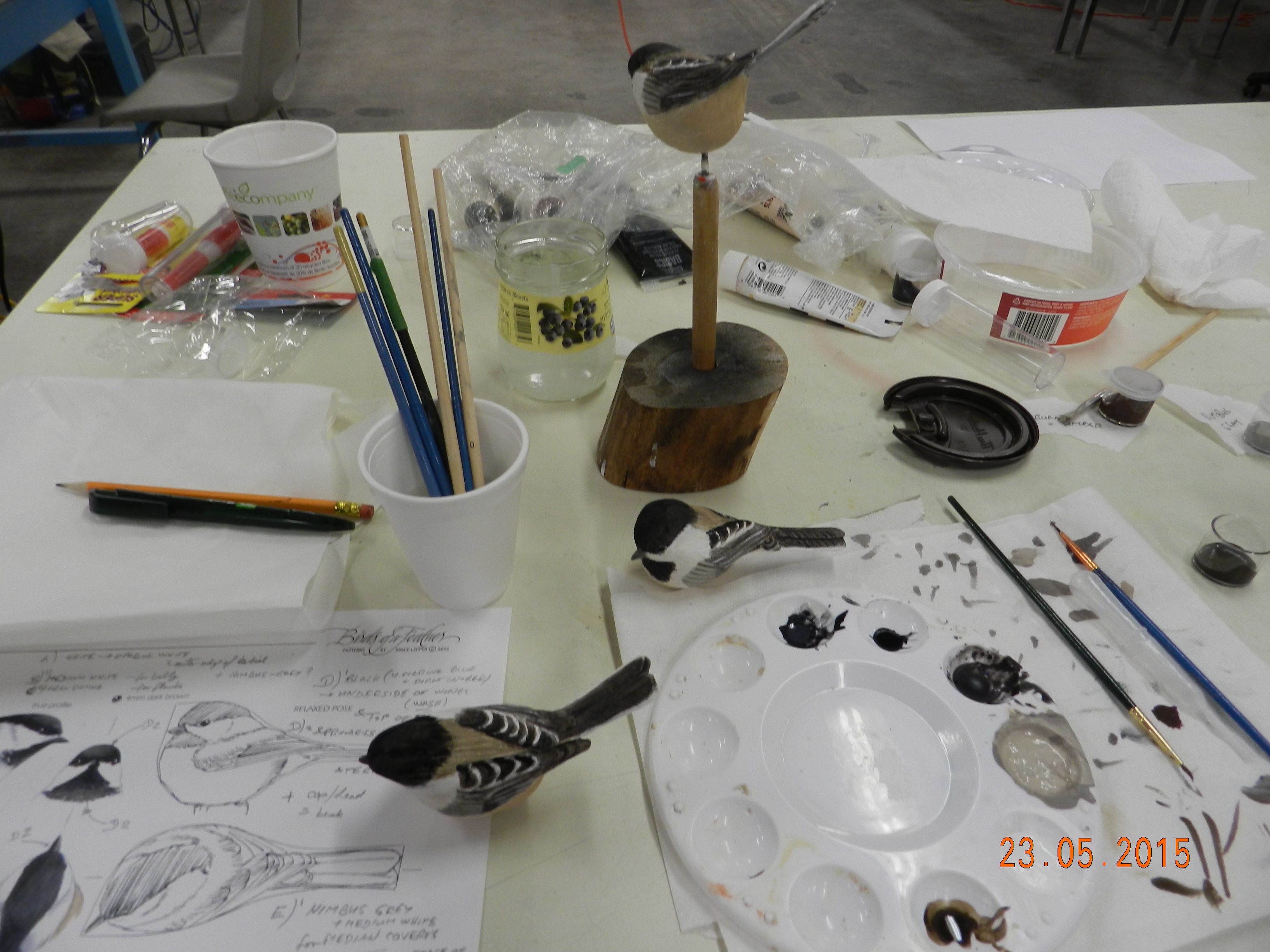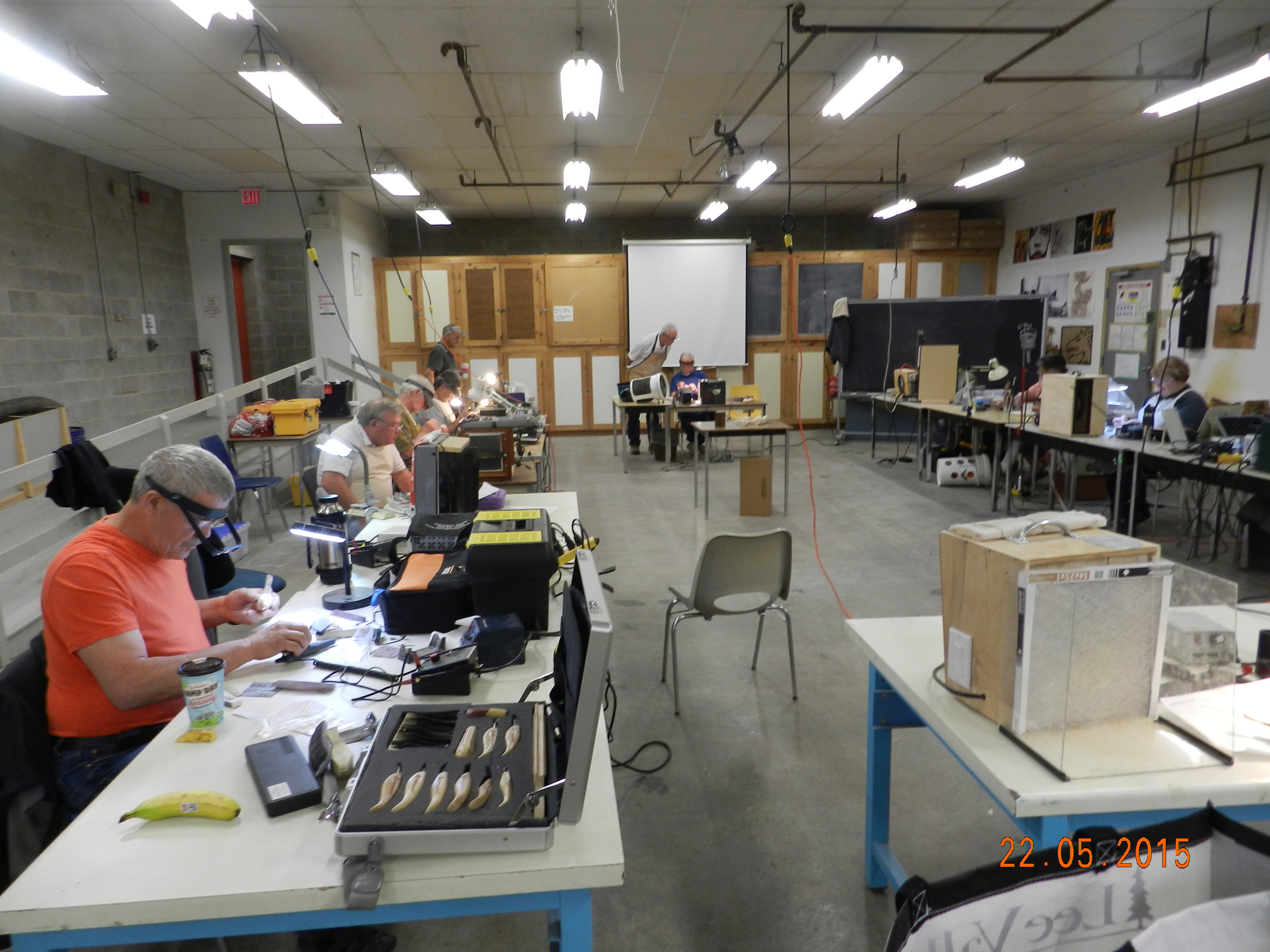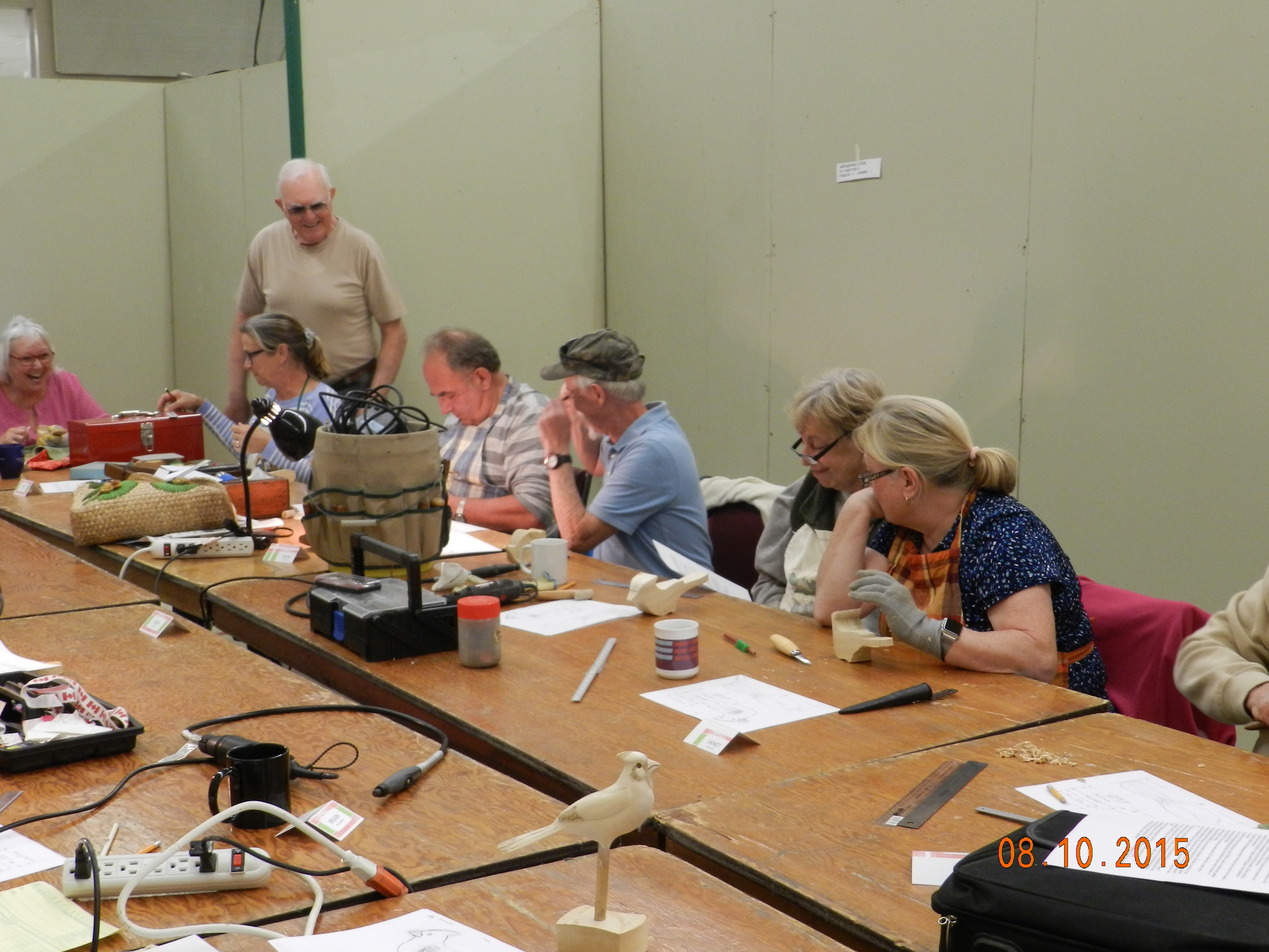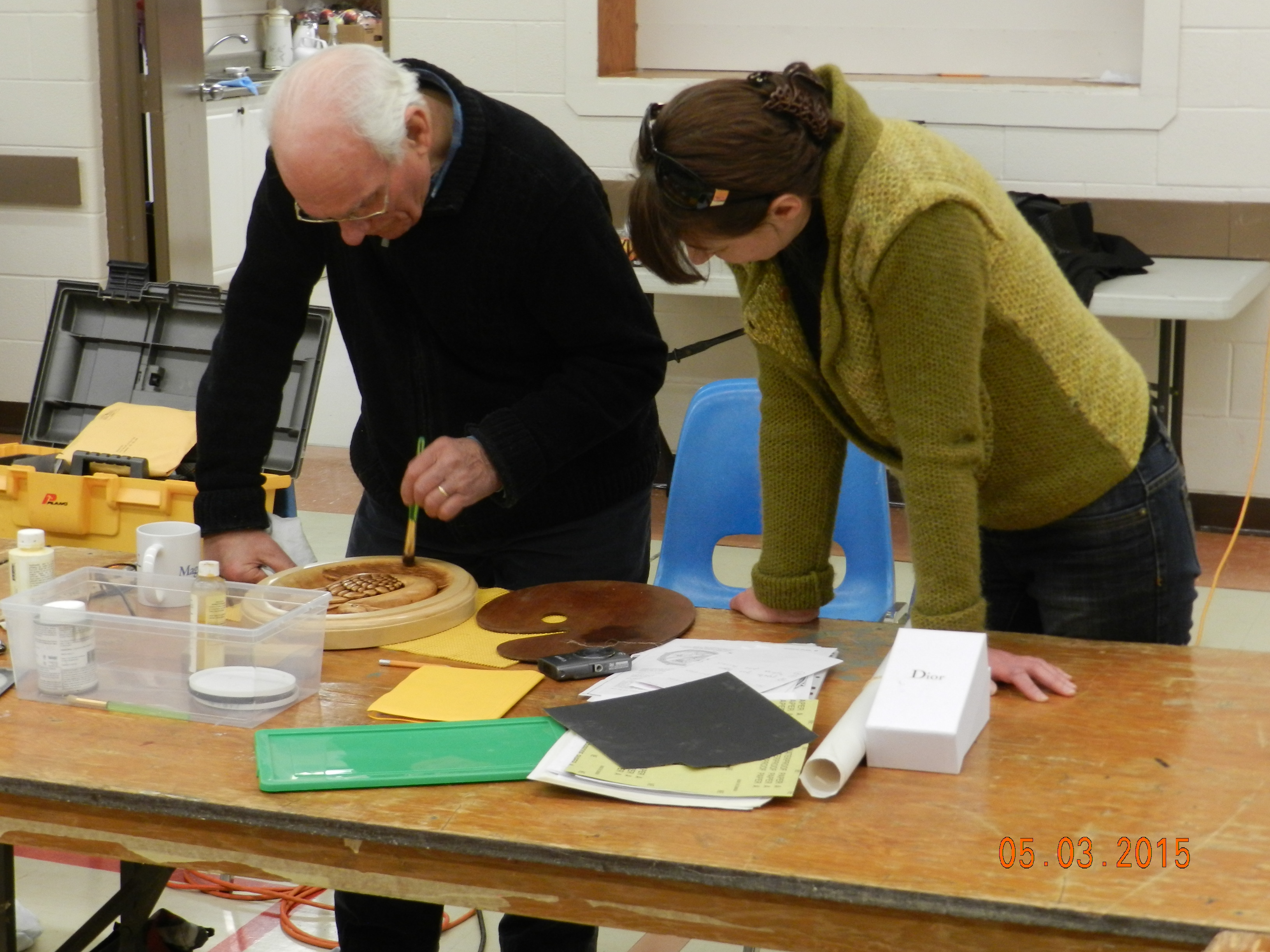 Bob Gill assists the new member (Tetyana) in a relief carving project. Was well appreciated !