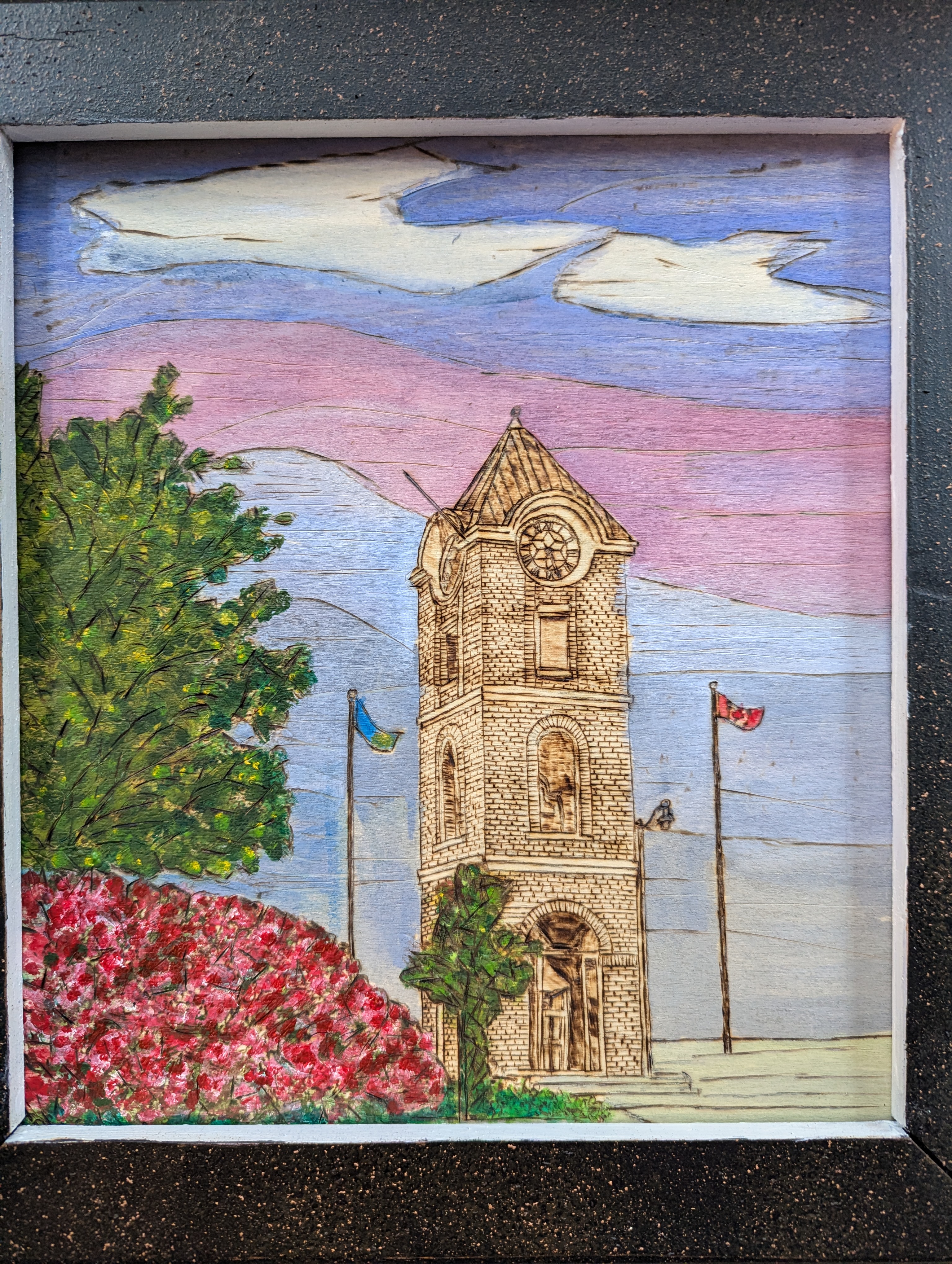 New wood burning project called CLOCKTOWER TILLSONBURG ,just in time to add it to the Holiday Arts Market at the STATION ARTS CENTRE in Tillsonburg ( December 2 -19, 2024, Monday to Saturday 9 am – 4 pm). There will also be some more seasonal items on display…